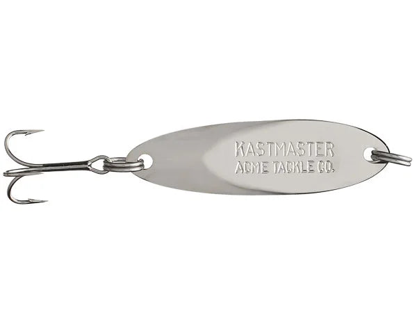 The Acme Tackle Kastmasters have been putting fish in the boat for years. From black bass to pan fish and stripers to salmon, a wide range of fish species have fallen victim to the Kastmaster. The secret is in the wild, erratic action they create, flickering and flashing through the water like an injured or frightened baitfish. Their balanced, aerodynamic design also helps eliminate line twist on the retrieve, and makes them great long distance casters.