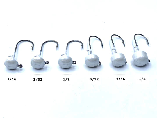 The Toadstool Ned Jig Heads are made with a medium wire 90 Degree VMC 9147 Aberdeen. Each "No Chip" head is powder coated and baked to ensure maximum durability when dragged or bounced along rock, or any kind of hard cover. We also avoid Powder coating the hook eye to prevent any unwanted rough edges from weakening the knot. The VMC Black Nickle Plated hooks will give you the sticky sharp needle point precision we've all come to appreciate from VMC.